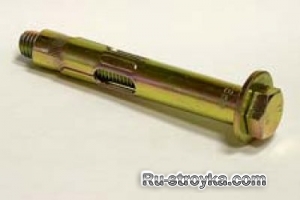 Анкерный болт с гайкой. Используется для крепежа различных металлических конструкций, таких как кронштейны, консоли, профиля и т.п., а также для крепления деревянных лаг и брусьев. Применим для бетона, природного камня, полнотелого кирпича. Может выдерживать существенные нагрузки на вырывание.