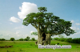 Толст баобаб, но «винтовочная пуля пронзает его насквозь», потому что его ткани чрезвычайно мягки и пористы. В сезон дождей они много воды накапливают. В коре и древесине одного сравнительно небольшого баобаба содержалось 120 тонн воды! Просто не верится… Но об этом пишет в своей обширной монографии «Растительность Земли» Генрих Вальтер. Кроме того, и корни баобаба хорошо «поят» дерево: они простираются под землей на многие метры от него.В мягком стволе баобаба часто образуются огромные дупла. В них хоронят умерших. Знаменитый английский путешественникДавид Ливингстон видел полый баобаб, внутри которого «спокойно могли улечься двадцать — тридцать человек». А дерево с почти совсем пустым стволом жило, не умирало! Даже когда стопной пожар выжигает его сердцевину, баобаб растет, как невредимый. Содранная с него кора скоро вновь его покрывает.И такая странность обнаруживается в баобабе: он не толстеет из года в год, а порой даже «худеет», меньше делается в обхвате. По-видимому, случается это в засушливые годы, тогда как в дождливые диаметр баобаба увеличивается.