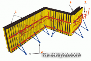 Общие сведения об опалубке фундамента Задачей фундамента является перенос нагрузок, идущих от фундамента здания либо напрямую, либо опосредованно (например, через сваи) на слои грунта с достаточной несущей способностью, либо на скальные породы. Основой фундамента служит ненарушенный фунт, уплотнённое земляное наполнение или скала. Фундамент делается в основном в виде бетонных либо железобетонных конструкций, которые заливаются на месте. Метод строительства фундамента, кроме нагрузок со стороны здания, определяется также характеристиками почвы в месте строительства. Поэтому закладные фундаменты проектируются и строятся всегда по-разному для каждого объекта. Закладные фундаменты, как правило, не остаются на виду, и поэтому к ним не устанавливается требований к поверхности и другим показателям внешнего вида. Важным является согласование выполнения опалубочных и других работ, таких, как армирование, прокладка труб и кабелей, а также вопрос совместимости соединяемых конструкций. Материалы При проведении плотницких работ для изготовлении опалубки в качестве каркасного материала используется доска 22×100 и батенс 50×100, а также в качестве обшивки -доска 22×100. Используемый пиломатериал обычно бывает с обзолом. Доска, используемая для обшивки, может быть довольно свежей. Для крепежа используются обычные гвозди длиной 60-100 мм в зависимости от соединения.