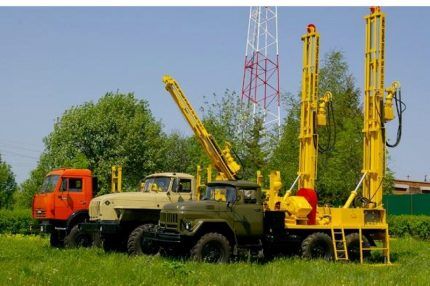 Для промышленного бурения водяных скважин используются как стационарно установленные на машины установки, так и легкие мобильные станки, станины которых можно расположить в любом месте