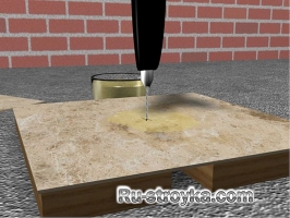 7. При сверлении плитки, под нижнюю ее часть нужно уложить ровный легко просверливаемый материал, плоское дерево или гипсокартон, в этом случае вы получите ровное отверстие без сколов на нижней части плитки. Если у вас нет никакого материала для подкладки под плитку, то примените два бруска, разместив их ближе к отверстию. Будьте осторожны при сверлении отверстия при помощи брусков, так как на выходе сверла вы нечаянно можете расколоть плитку. |