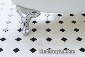 6. При подсыхании затирки, отмываем плитку при помощи воды и губки от излишней затирки, которая была нанесена на плитку.
