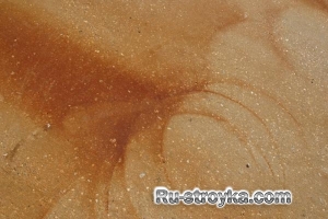 Если ржавчина была вызвана из-за металлической арматуры, которая выступает из цемента, то после очистки ржавчины нанесите слой герметика, чтобы ржавчина не распространялась дальше, а после этого сделайте тонкий слой растворной стяжки.
