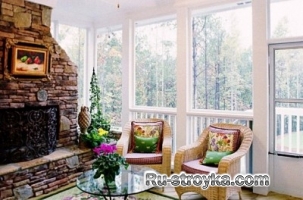 На веранде возможно оборудование как встроенного, так и отдельно стоящего камина.
