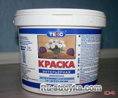 Водно-дисперсионная краска («Краски ТЕКС», Россия) НАЗНАЧЕНИЕ: внутренние работы — окрашивание потолков и верхних панелей стен в сухих помещениях. Пригодные основания: бетонные, оштукатуренные, гипсокартонные, кирпичные, деревянные поверхности.