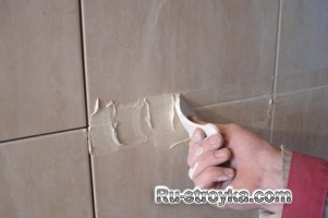 Нанесение затирки на керамическую плитку.