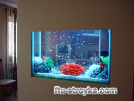 - аквариумы нельзя размещать напротив окна, яркий солнечный свет не пойдет им на пользу, кроме того, они не любят сквозняков; вес аквариумов определяется не столько их объемом, сколько высотой, в узких высоких моделях давление воды намного превышает то, что свойственно традиционным широким экземплярам, поэтому обязательно необходимо дополнительное усиление пола (обычно, под стяжкой) или с помощью более широкого основания (которое затем можно замаскировать декором); работа оборудования может быть достаточно шумной, поэтому имеет смысл проверить его заранее, а для спальни больше подойдут компактные модели или те, в которых отсутствуют рыбы; крупные аквариумы не всегда можно пронести по лестнице или поднять в лифте, в этом случае есть 2 альтернативы – внос через окна (подъемным краном) или сборка на месте (этот процесс требует особых условий и достаточно времени на склейку и сушку, его рекомендуется осуществлять до вселения в квартиру); если вы никогда не имели дела с аквариумом и не планируете тратиться на сервисную компанию, выбирайте средний объем – 150-200 л, за более мелкими ухаживать сложнее, а крупные обязательно потребуют участия специалистов; вписывать аквариум в интерьер необходимо до ремонта, учитывая его размеры (с оборудованием), необходимые условия и подводку воды-канализации (не дальше 10-15 м), если аквариум не является изначально герметичной системой.