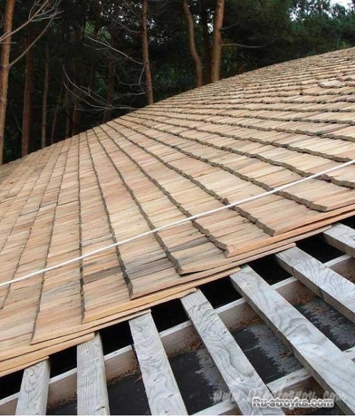 Черепица из лиственницы очень легкая на вес, поэтому если опоры крыши не укреплены дополнительно – не проблема, они выдержат данный кровельный материал.