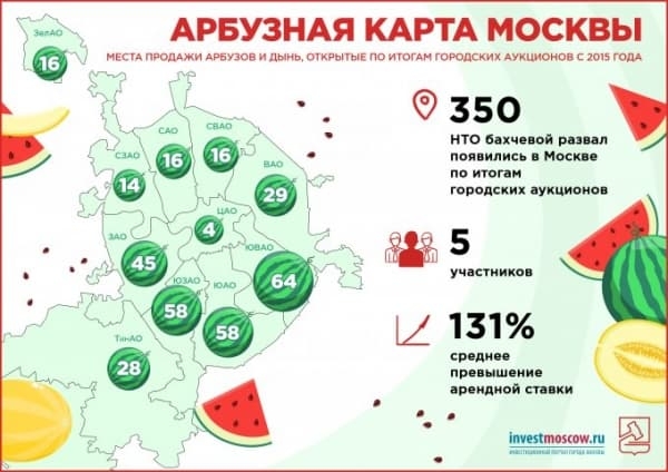 Как выяснили в Строительство.RU у организаторов аукционов, которым выступил Департамент города Москвы по конкурентной политике, ко Дню арбуза подсчитал появилась карта точек продаж.