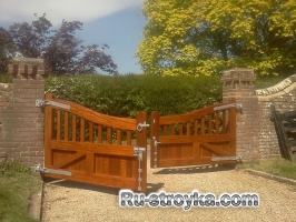 Распашные ворота открываться поворотом вокруг точки опоры, как обычные двери. Устанавливаться такие ворота так, чтобы они открывались внутрь двора и должно быть необходимое пространство для их открытия.