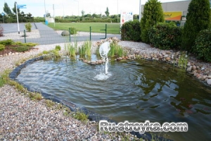 На выбранном месте колышками отмечается форма пруда, если он выкапывается на ровном участке, а если его ложе рассчитано на овраг, то отмечается место платины. В проточных прудах для канализационных труб нужно выкопать траншеи в середине ложа со скатом к плотине, где будет установлен водоспуск. Так как ложе пруда должно быть непроницаемым для воды, то на грунте из легких суглинков или песчаном укладывается слой мелкой гальки, смешанной с глиной, утрамбовывается так, чтобы дно имело понижение к планируемому спуску воды. Затем сверху кладут полиэтиленовую пленку или толь, заливают слоем битума и, когда он затвердеет, на него на¬носят слой цементного раствора, смешанного с песком в соотношении 3:1. Около окна водослива для стока лишней воды поверхность дна выравнивается, а в окно стока вставляется металлическая сетка, препятствующая выходу раков любого возраста. Берега делают отвесные, которые должны быть на 20—30 см выше поверхности земли и иметь снаружи пологий спуск. Бровка вокруг пруда делается для того, чтобы в случае сильного дождя вода не попала в пруд и не загрязнила воду. Около пруда нужно насыпать слой гравийного песка толщиной не менее 20 см. Вокруг пруда хорошо посадить деревья и кусты, чтобы улучшить его вид и создать возле берегов тень. Глубина воды возле берега должна быть не более 30—40 см.